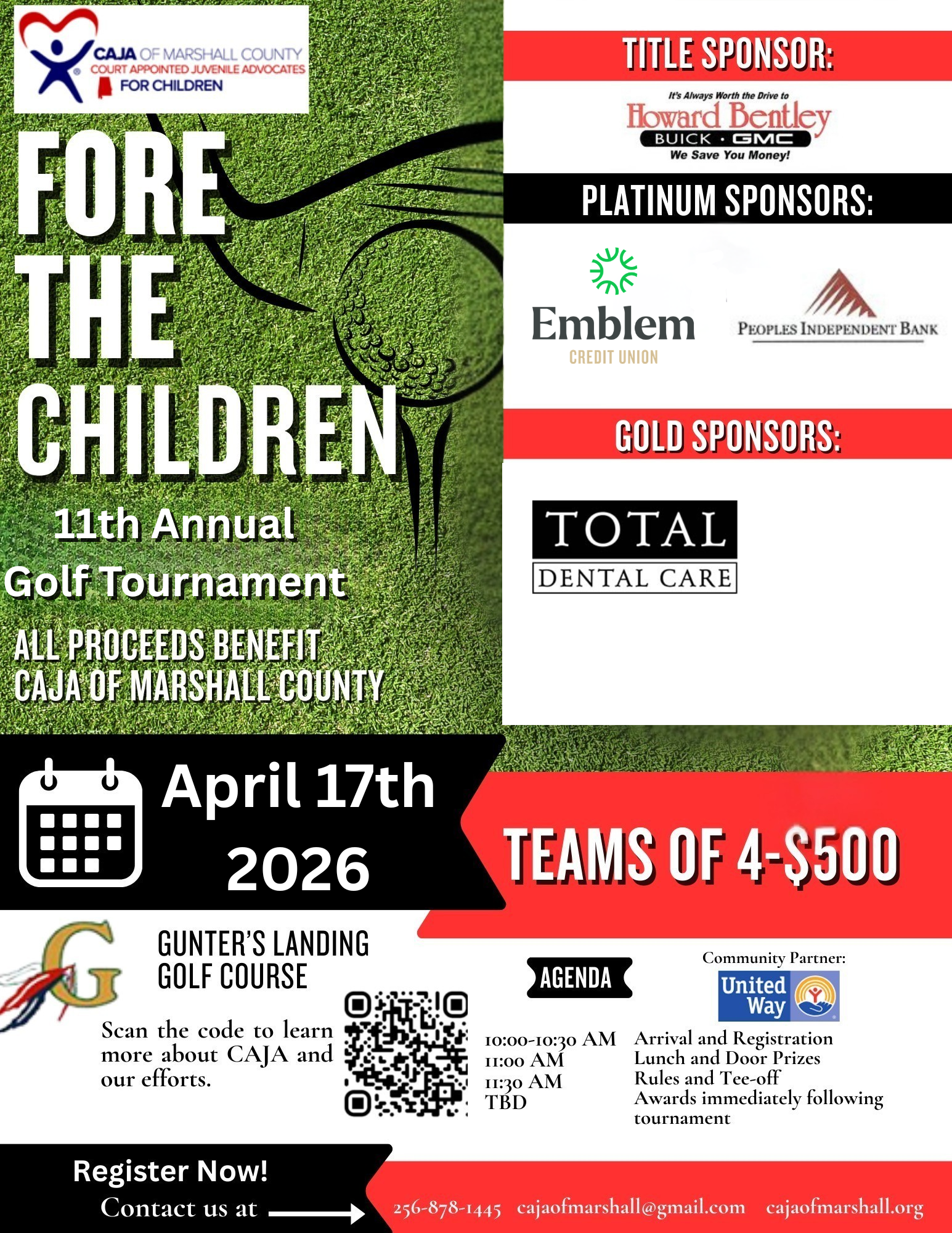 DETAILS: Teams of 4 are $500. All proceeds benefits CAJA of Marshall County. Scan the QR code below or call 256-878-1445