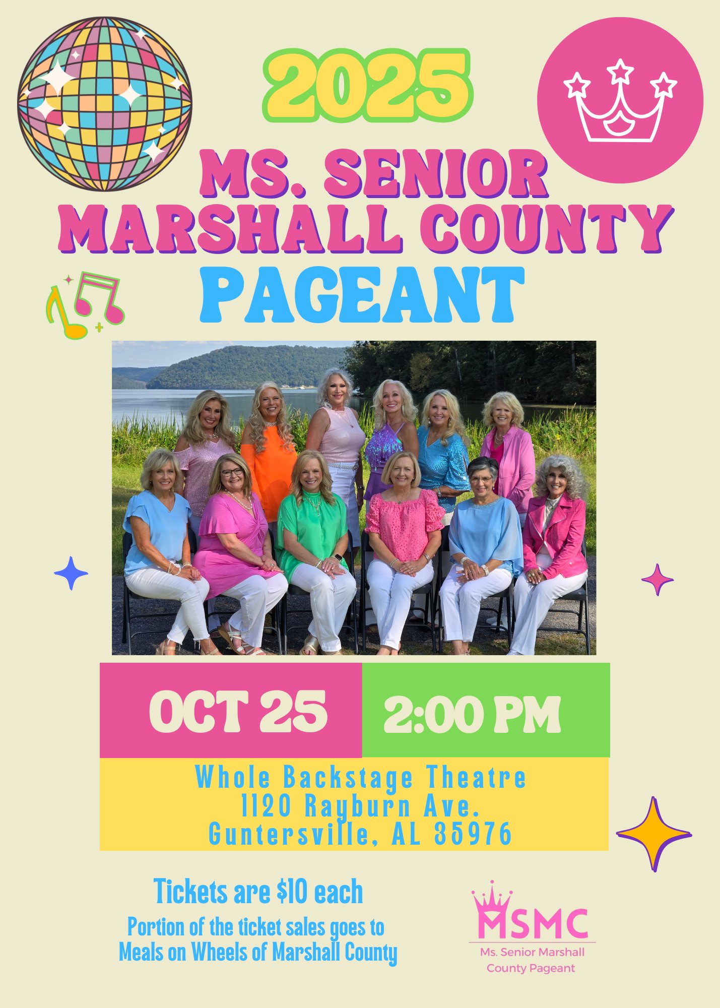 Please make plans to come support your favorite lady as they will perform an opening number together, experience a 5-minute interview with three Judges, model three different outfits and answer an on-stage question to win the titles of Ms. Senior Marshall County and Ms. Super Senior Marshall County.