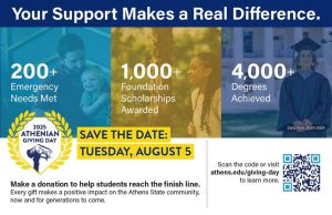 DETAILS: Something BIG is coming to Athens State, and it’s going to take all of us! Mark your calendars for August 5 – Athenian Giving Day is almost here!