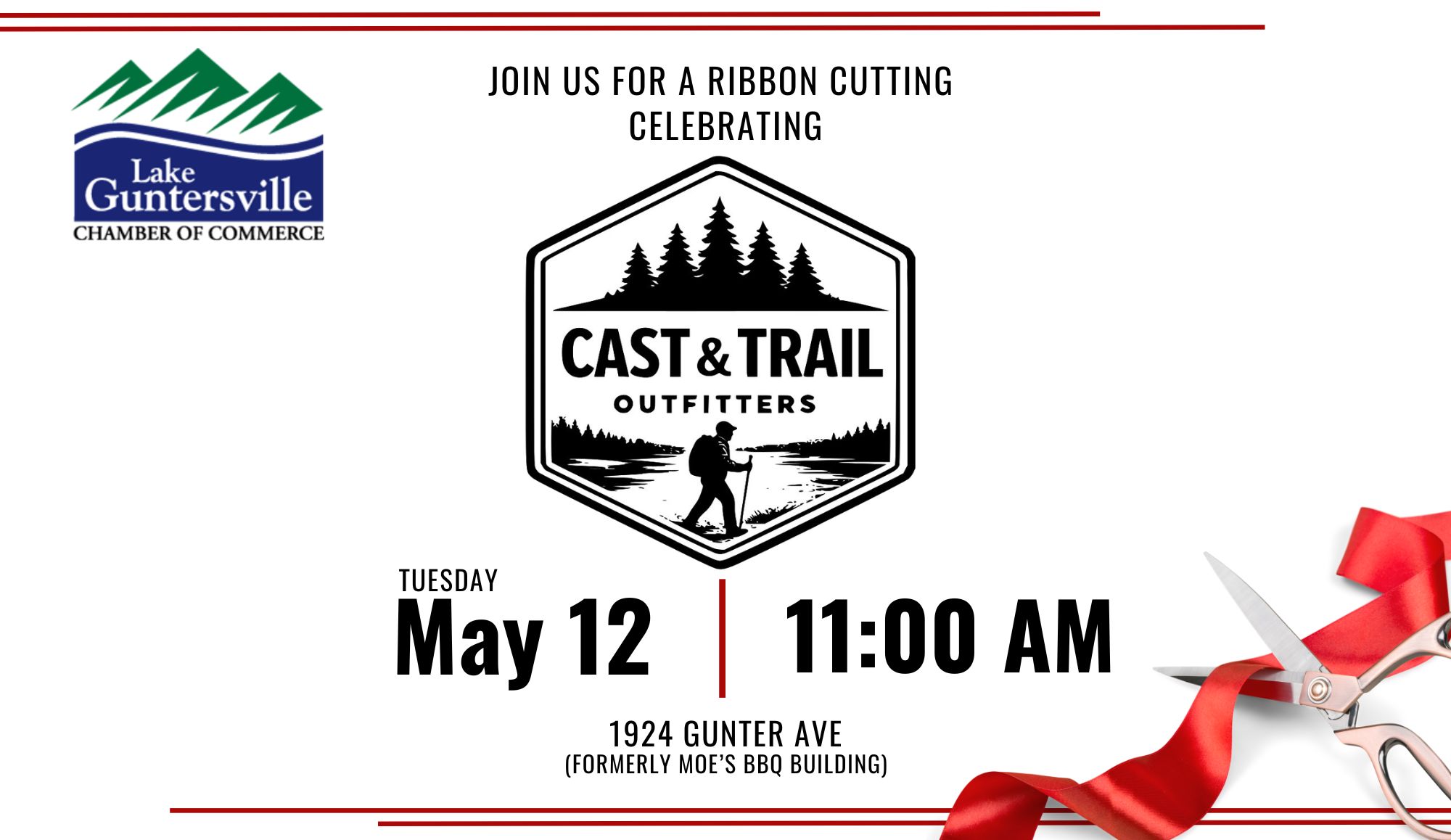 DETAILS: The more, the merrier! Join us as we cut the big ribbon in celebration of Cast & Trail Outfitters!