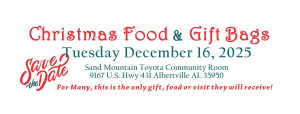 LOCATION: Sand Mountain Toyota Community Room – 9167 US HWY 431, Albertville, AL