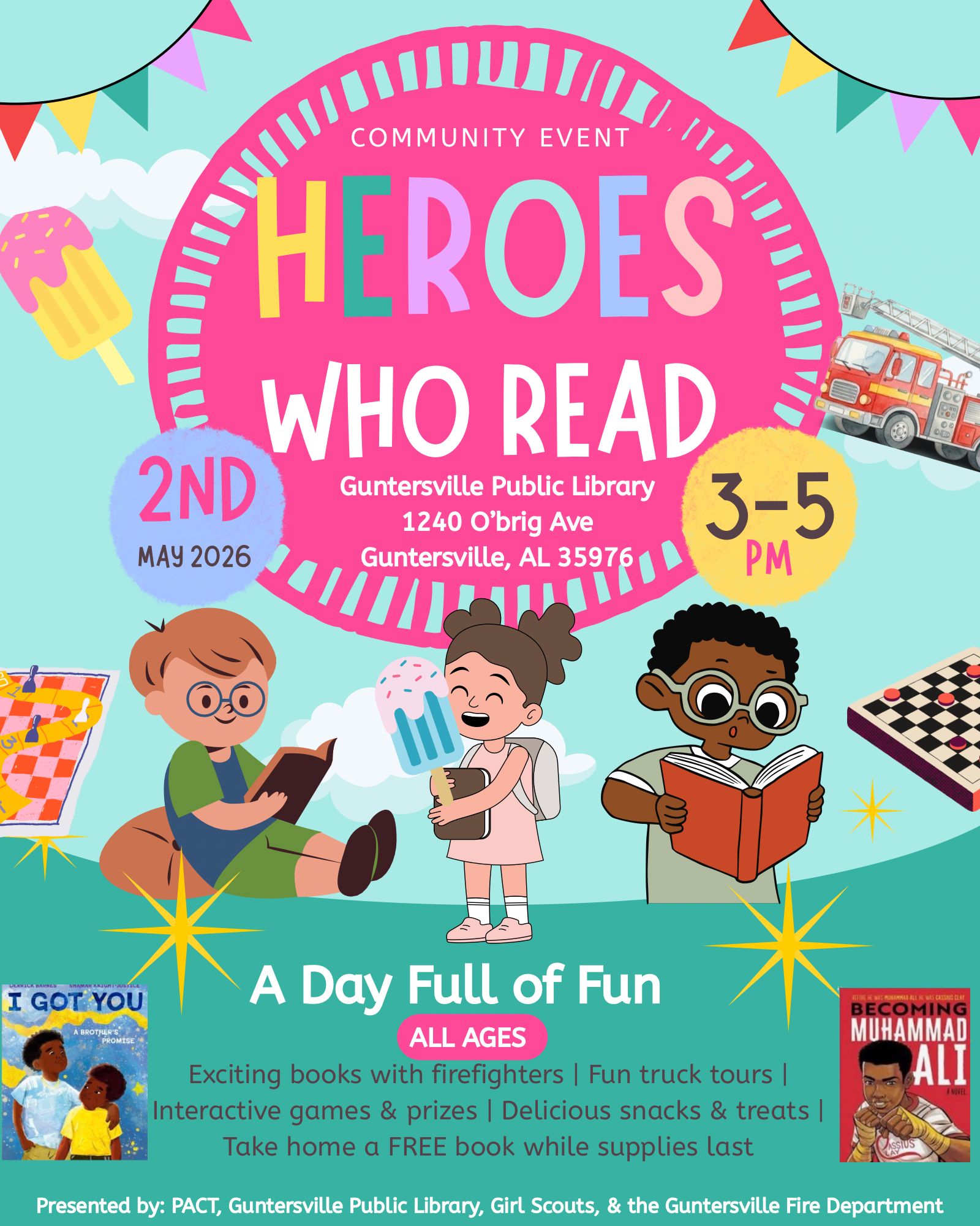 DETAILS: Everyone and all ages are invited! Enjoy books with firefighters, truck tours, interactive games and prizes, snacks, treats, and more!