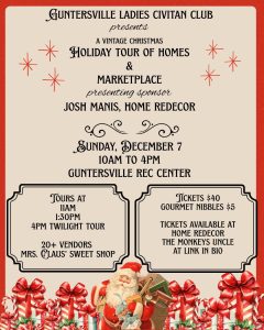 DETAILS: The Guntersville Ladies Civitan Club presents A Vintage Christmas Holiday Tour of Homes & Marketplace!