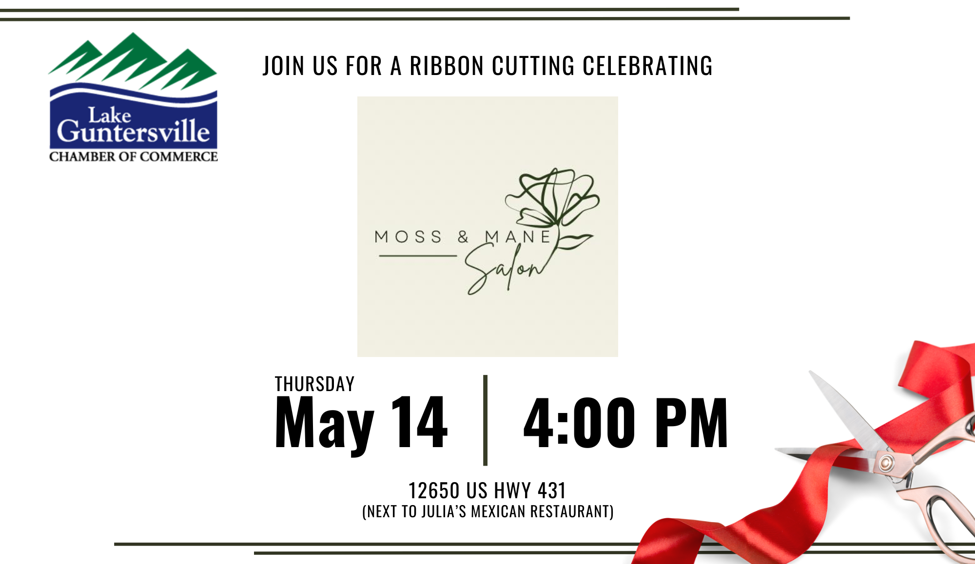DETAILS: Everyone is invited! Join us as we celebrate the Moss & Mane Salon team with a ribbon cutting ceremony.
