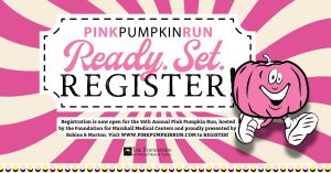 DETAILS: Lace up and join us! Registration is now open for the 16th Annual Pink Pumpkin Run, hosted by the Foundation for Marshall Medical Centers and proudly presented by Robins & Morton.
