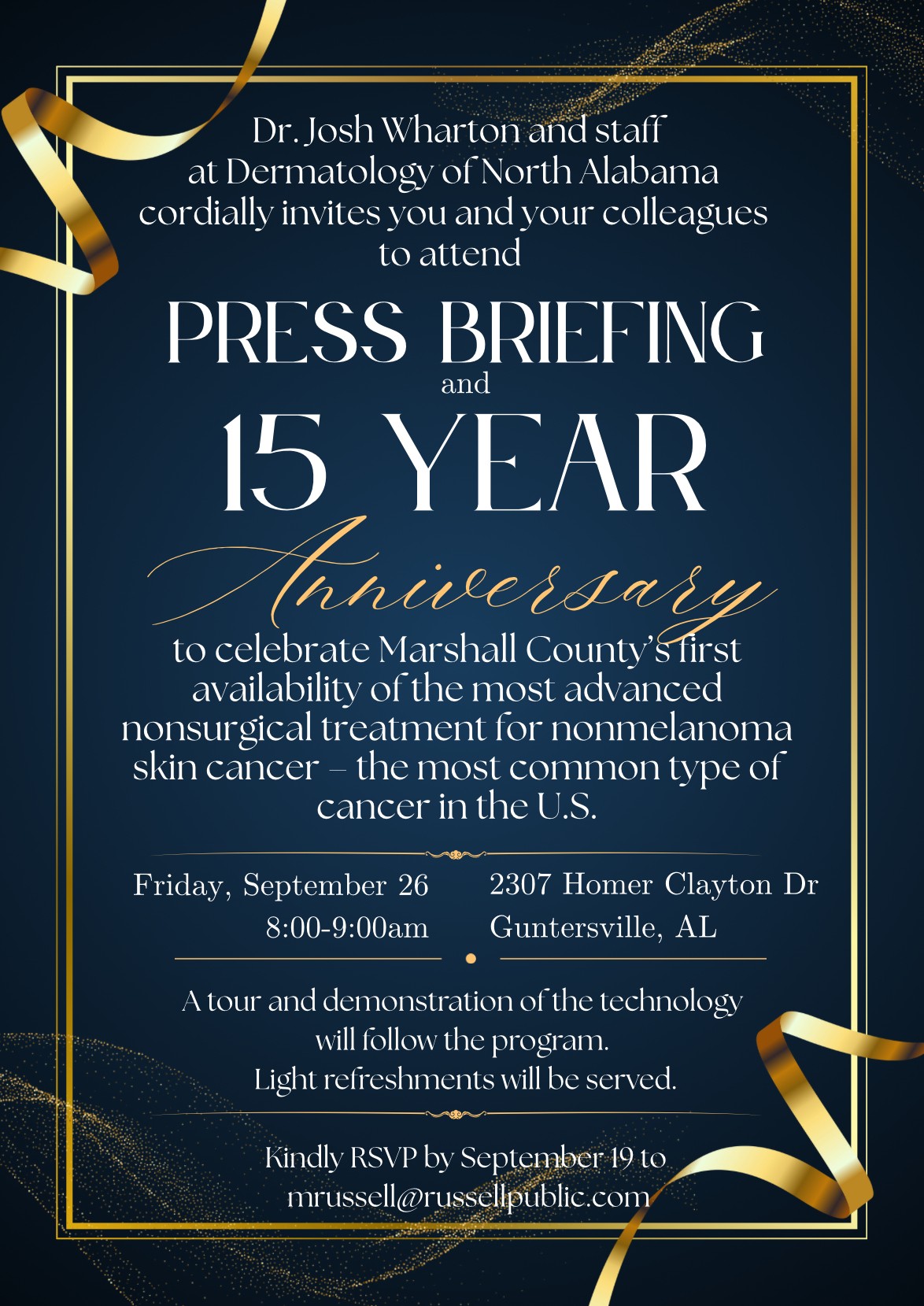 Press Briefing & 15 Year Anniversary – Dermatology of North Alabama
