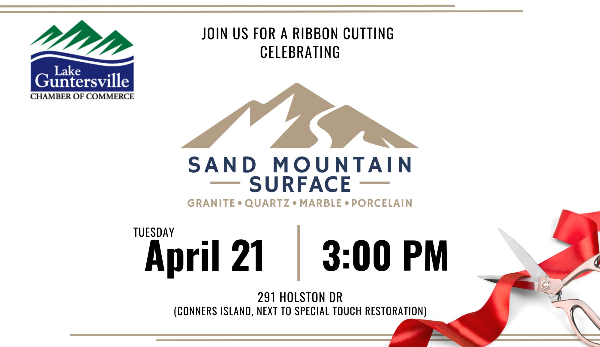 DETAILS: The more, the merrier! Share the news and join us as we celebrate Sand Mountain Surface with a ribbon cutting ceremony. Check out their incredible new facility after we cut the big ribbon.
