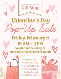 DETAILS: Join us for a Valentine’s Day pop-up sale! We will have many vendors, including Curley’s Creek, Grace Girl Beads, Big Hair Bama, So Sew Special, and Little Home Bakes.